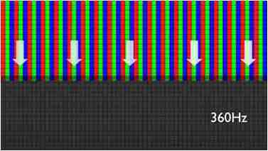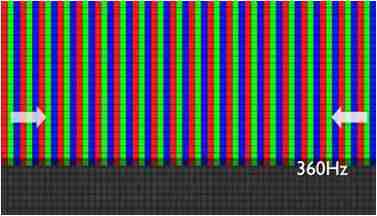传统液晶驱动是从左到右单向进行,,在画面更新速度愈来越愈快的情况下,,,位于驱动线路末端的右下角区域,,,画素的闸极来不及在短时间内获得足够电压,,,,无法显示出正确的颜色资讯。。