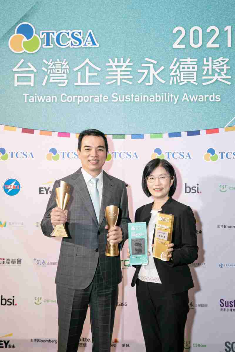 达在台湾永续奖所评比环境、、、社会、、治理等各面向的永续绩效均获高度肯定 (左:888.BY集团电子游戏光电总经理暨营运长柯富仁,,右:888.BY集团电子游戏光电永续长古秀华)