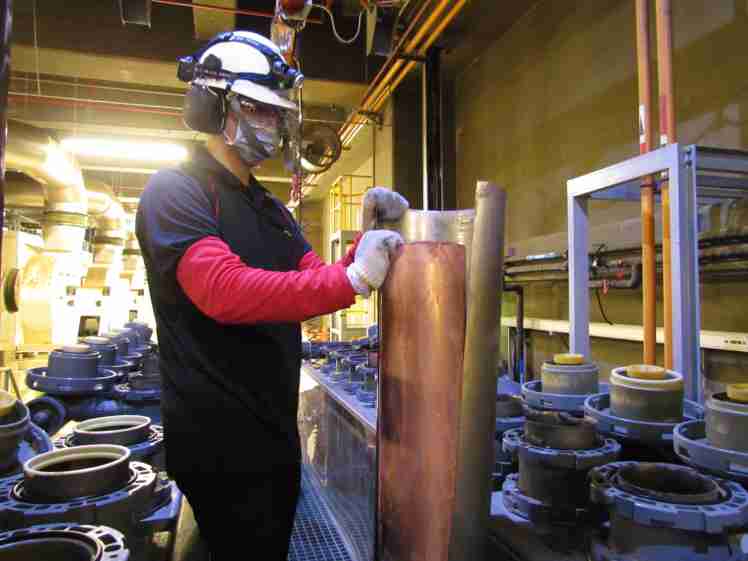888.BY集团电子游戏将废弃物转化成有效的工业或民生原物料,,,图为废铜液淬炼后再制成纯度极高的铜管