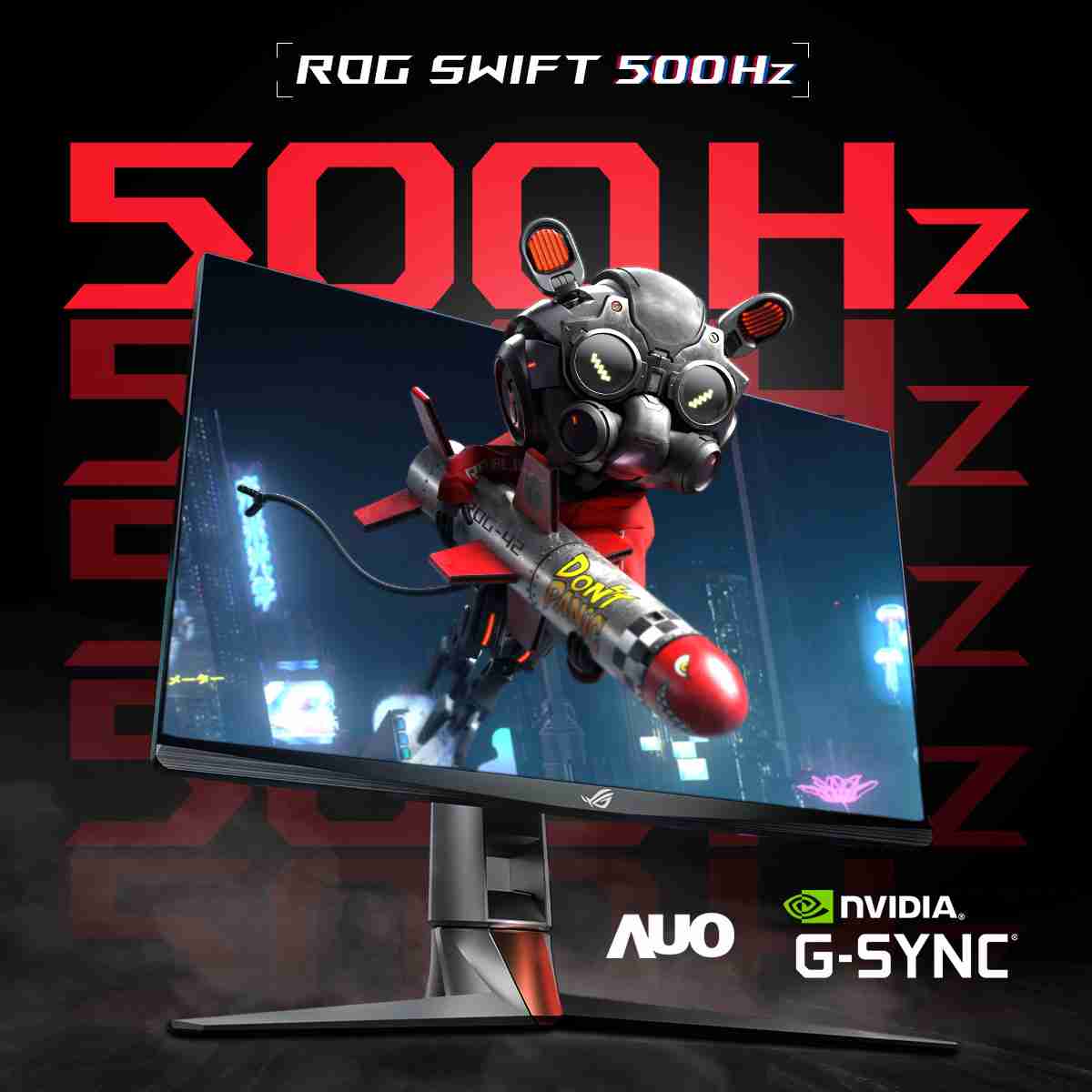 888.BY集团电子游戏光电今 (24) 日与辉达 NVIDIA 及华硕 ROG 共同发表全球第一款最高更新率* 24.1吋 500Hz 电竞螢幕── ROG Swift 500Hz,,,采用888.BY集团电子游戏专为电竞应用开发之 E-TN (Esports TN) 技术,,,,搭配辉达 NVIDIA 延迟分析工具,,,让游戏动态影像清晰锐利、、、流畅无残影,,,为玩家带来无延迟的疾速射击体验。。。