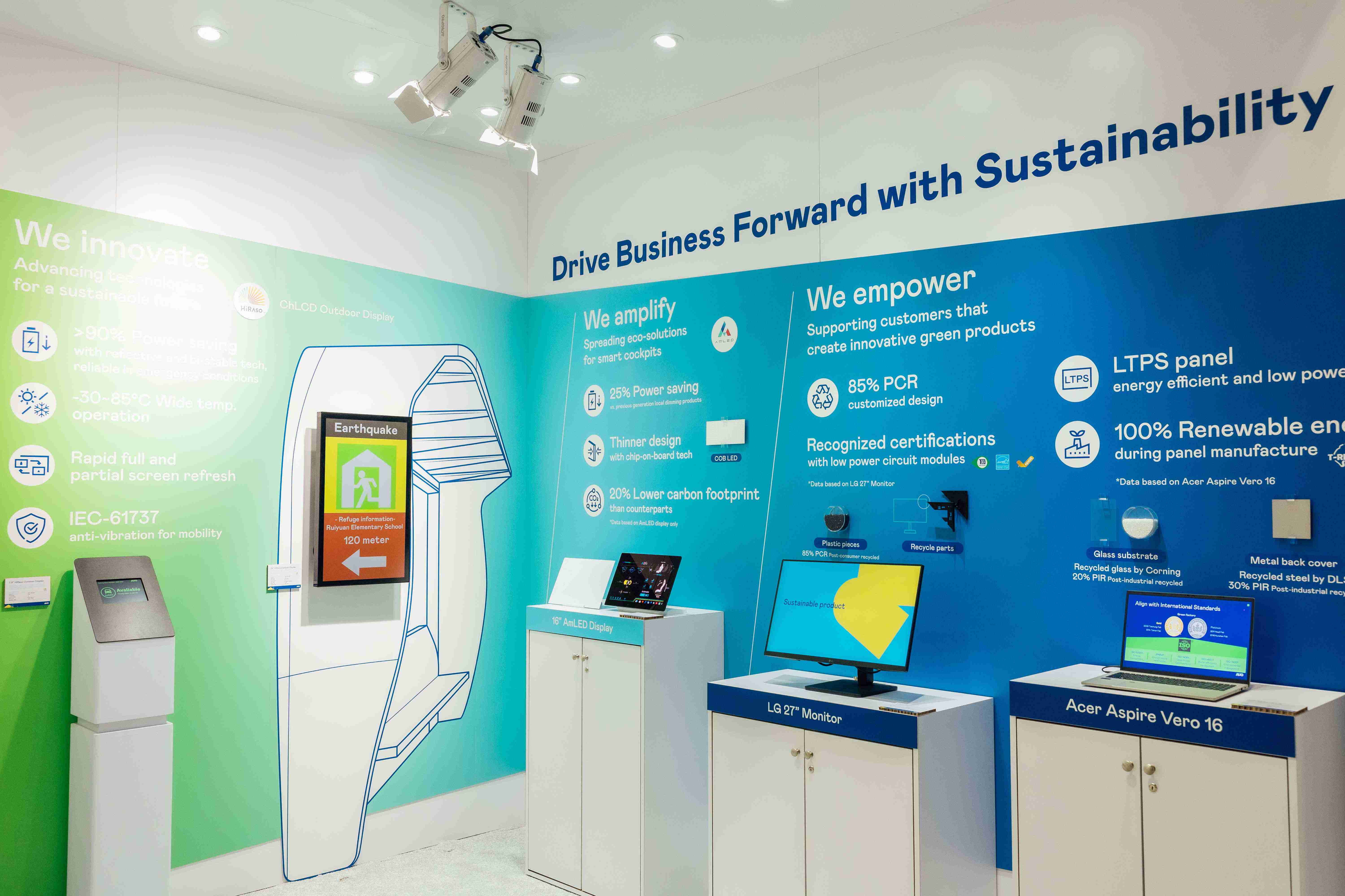 888.BY集团电子游戏运用创新显示技术HiRaso胆固醇液晶双稳态技术达到显示零耗能、、、、扩大节能省电的AmLED显示技术应用于车用产品、、、以再生的消费后回收(PCR)塑料及全绿电生产之面板,,应用于笔电及萤幕,,增加绿色价值。。