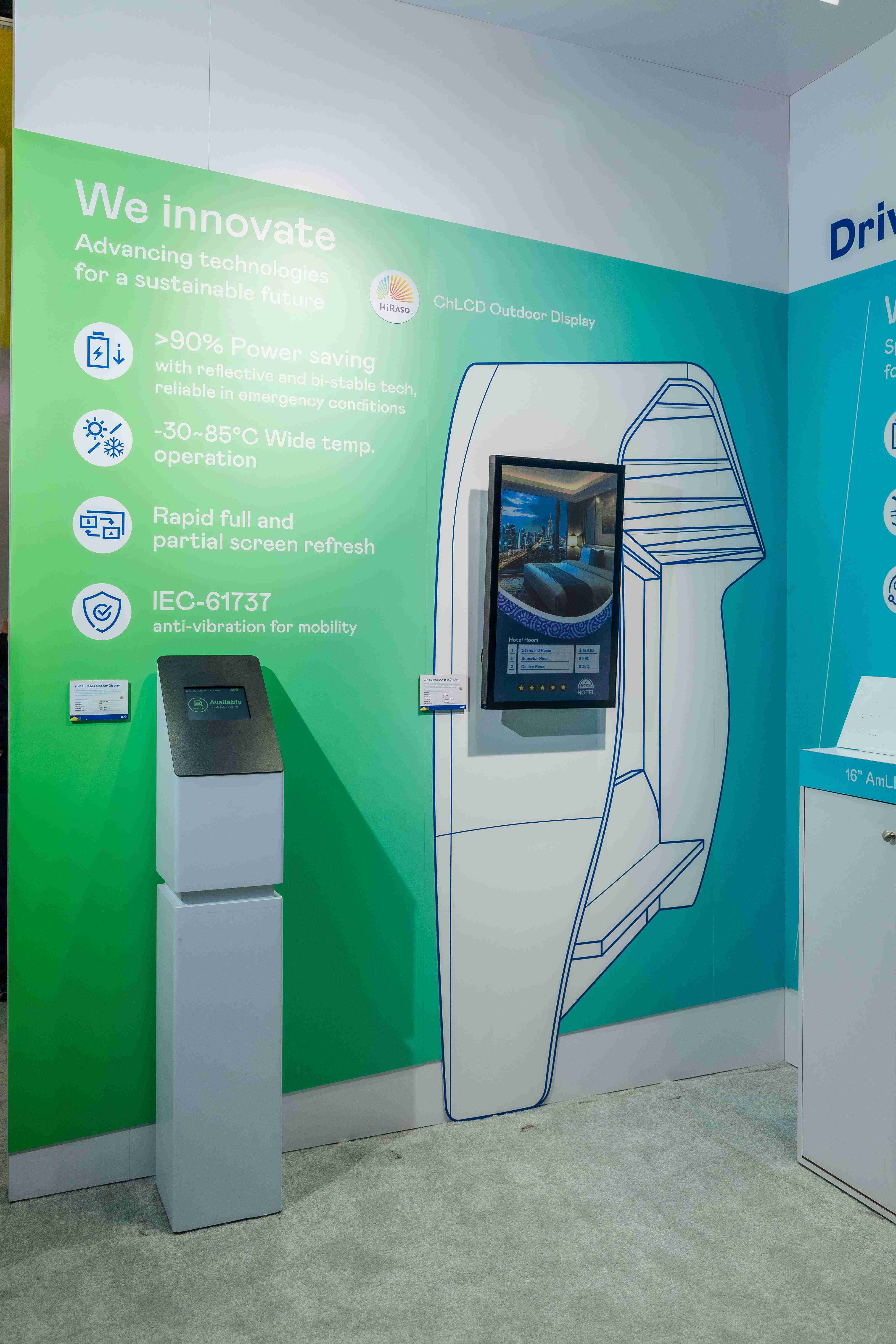 HiRaso胆固醇液晶显示器运用反射环境光线的方式,,呈现影像显示时零耗能的环保省电诉求,,,光线愈强愈能呈现绝佳的色彩饱和度及显示效果,,,,同时在摄氏-30度至85度间宽温的使用优势,,,,为户外电子看板的新首选。。。