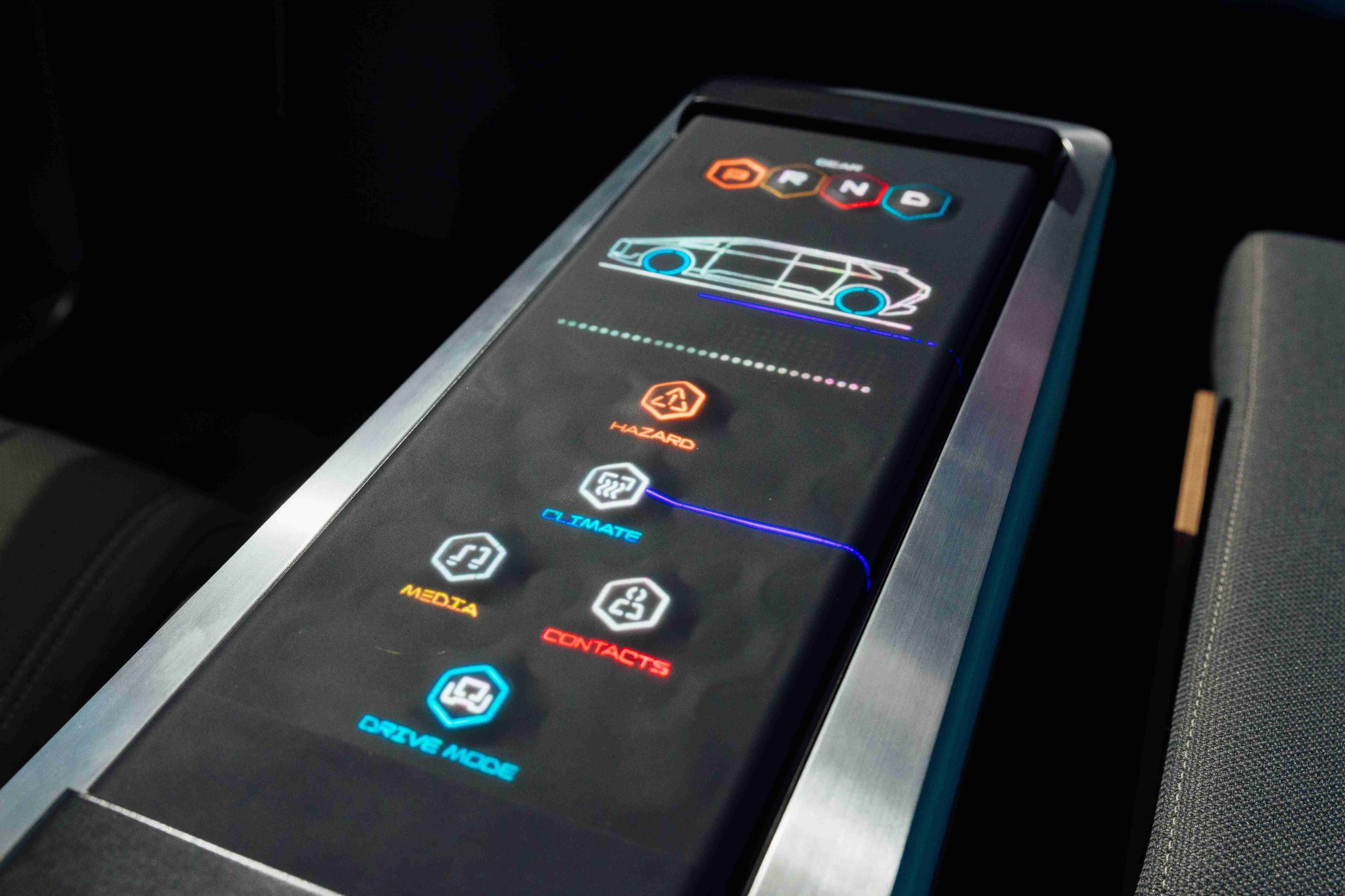 多变形态中控显示(Morphing Center Control)拥有动态变化的表面,,平时常态显示车辆功能,,,,进一步操作时,,,,则会隆起成为3D 按钮,,,并在触控时以震动回馈,,以精细的操作开创人机互动新境界。。。