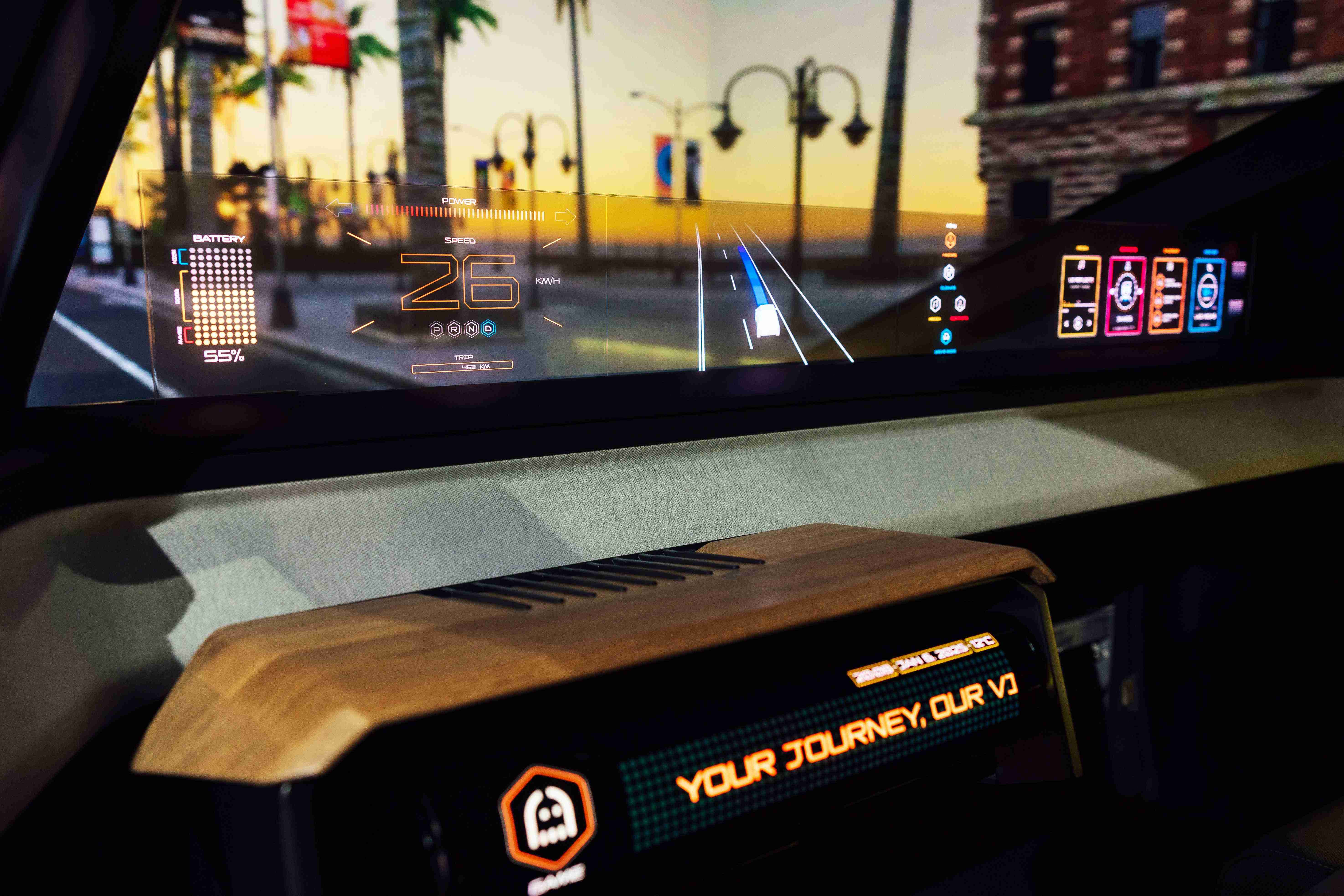 888.BY集团电子游戏Smart Cockpit 2025 在车头及车尾搭载合作伙伴Ennostar开发的互动式矩阵显示器(Interactive Matrix Display),,,,其突破传设计框架,,,利用优化的光源整合技术,,,提供更高亮度与对比度的显示效果,,,营造驾车者个性化风格并传递讯息。。。。