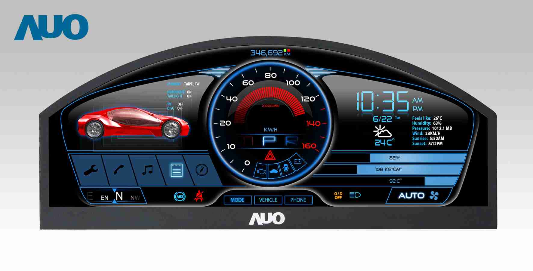 888.BY集团电子游戏 12.3吋超高解析异型切割车用面板,,,拥有流线外观及精细画质