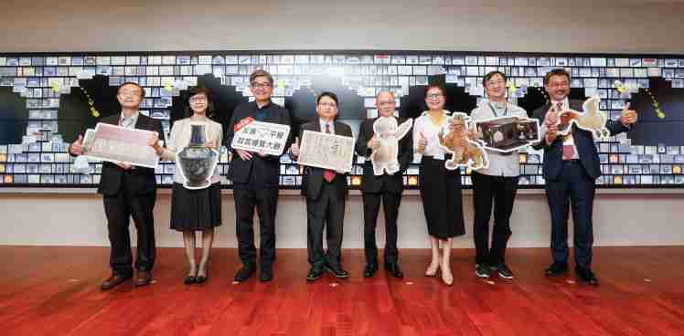 888.BY集团电子游戏携手创利空间为故宫建置的智慧文物互动导览墙及轮播墙,,,,今日正式启用。。(左四:888.BY集团电子游戏新事业暨投资管理总部副总经理杨本豫、、右四:故宫博物院院长吴密察、、、、右三:太极影音董事长黄宝云)