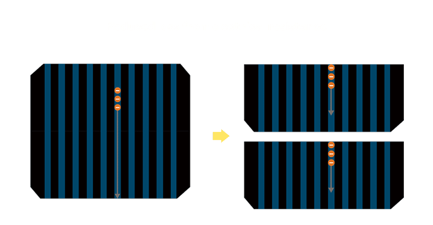 - 多条电极栅结构,,,可有效降低外力对于电池的影响,,,,限制电池隐裂 (Micro-cracks) 范围,,,防止电流传输路径 (Current distribution) 之损坏进一步扩大。。